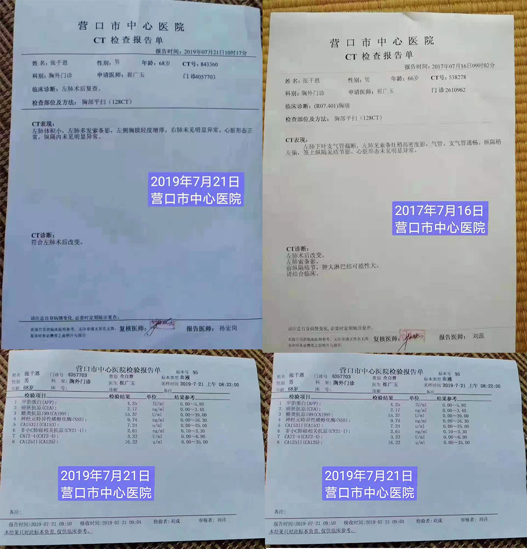 祝贺辽宁省盖州市晚期肺鳞癌患者采用蜂疗成功抑癌6年4个月!