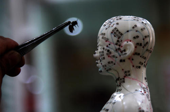 小小的蜜蜂也能治失眠!在黑龙江省红十字(森工总)医院的睡眠门诊,只见倪珊主任一手拿着蜜蜂,一手用捏子迅速拔出蜂针针入患者的百会穴、安神穴、太冲穴等,“它们可以20分钟收缩30多次,从蜂针的毒囊中释放蜂毒,从而达到治疗效果”。