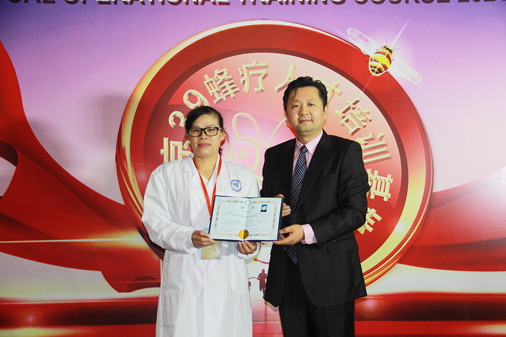 结业典礼上,李万瑶教授首先为学员们颁发了结业证书,还做出了总结,她表示:掌握蜂疗技术是学员们的渴望,借用中医五行学说,木火土金水蕴育着人生哲理说,“木曰曲直”,希望大家学有所成,能屈能伸,砥砺前行;“火曰炎上”,希望大家热爱蜂疗,热情使用,奋斗出人生成就;“土爱稼穑”,希望大家脚踏实地,学有所用,厚德载物,收获丰硕;“金曰从革”,希望大家遵纪守法,从守正道,收敛与发展创新;“水曰润下”,希望大家学以推广,善良纯粹,造福人类。五行蕴含着天人合一的自然观,五行“相生相克、相互制约、相互化生”,希望大家领悟其真缔,学习蜜蜂精神,发挥自身特点,宣扬蜂疗的优势,造福于全人类!