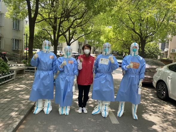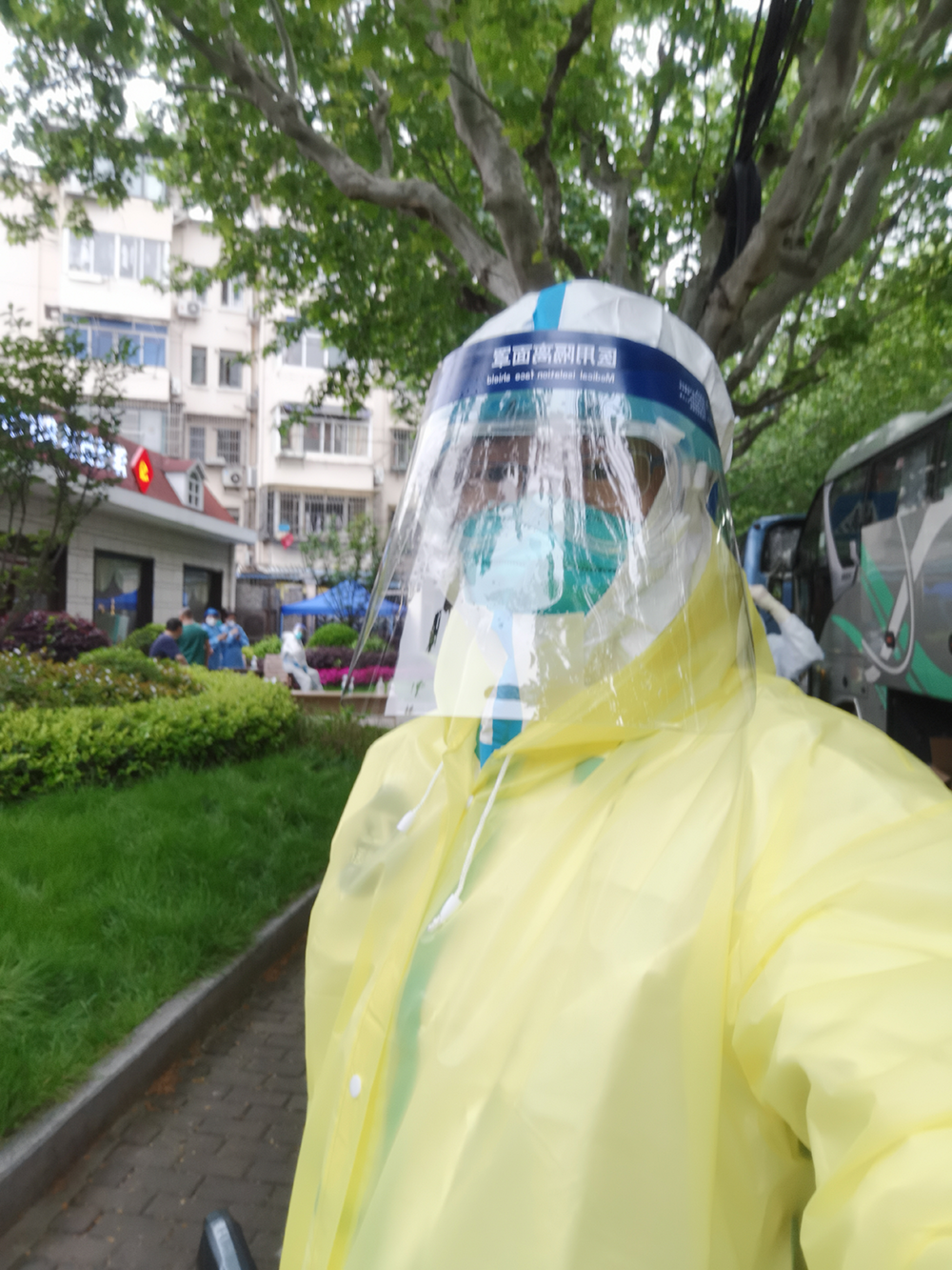 第一次在沪上岗,就要负责辖区内近二十万居民的核酸检测工作。浦东新区的塘桥街道,彼时已是疫情四起,情况紧、任务重、条件有限,来不及休息的支援队伍,只能在车内换好防护服、隔离衣。闷热的天气,厚重的防护服,繁重的工作,每个人的食物是一瓶水、两个小面包、一个卤鸡蛋、一根火腿肠,而每个人每天的工作量,是500-1000人的核酸采集工作。