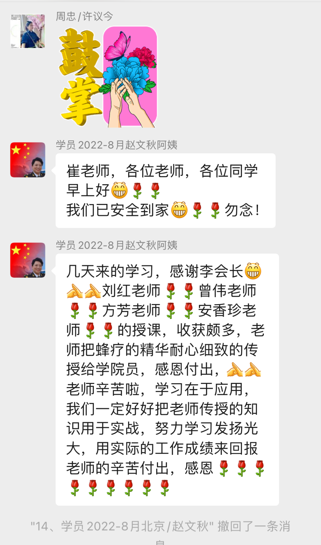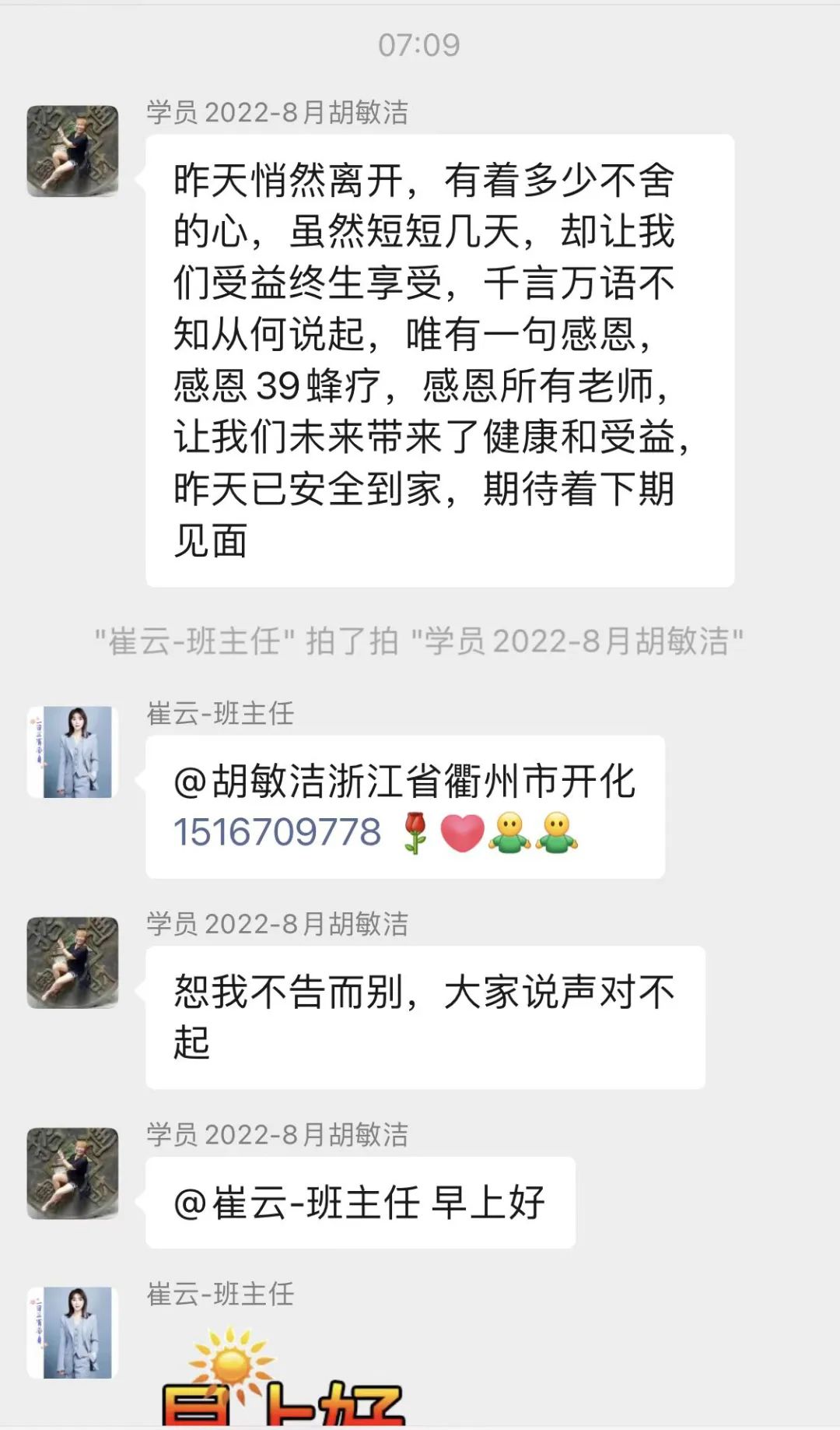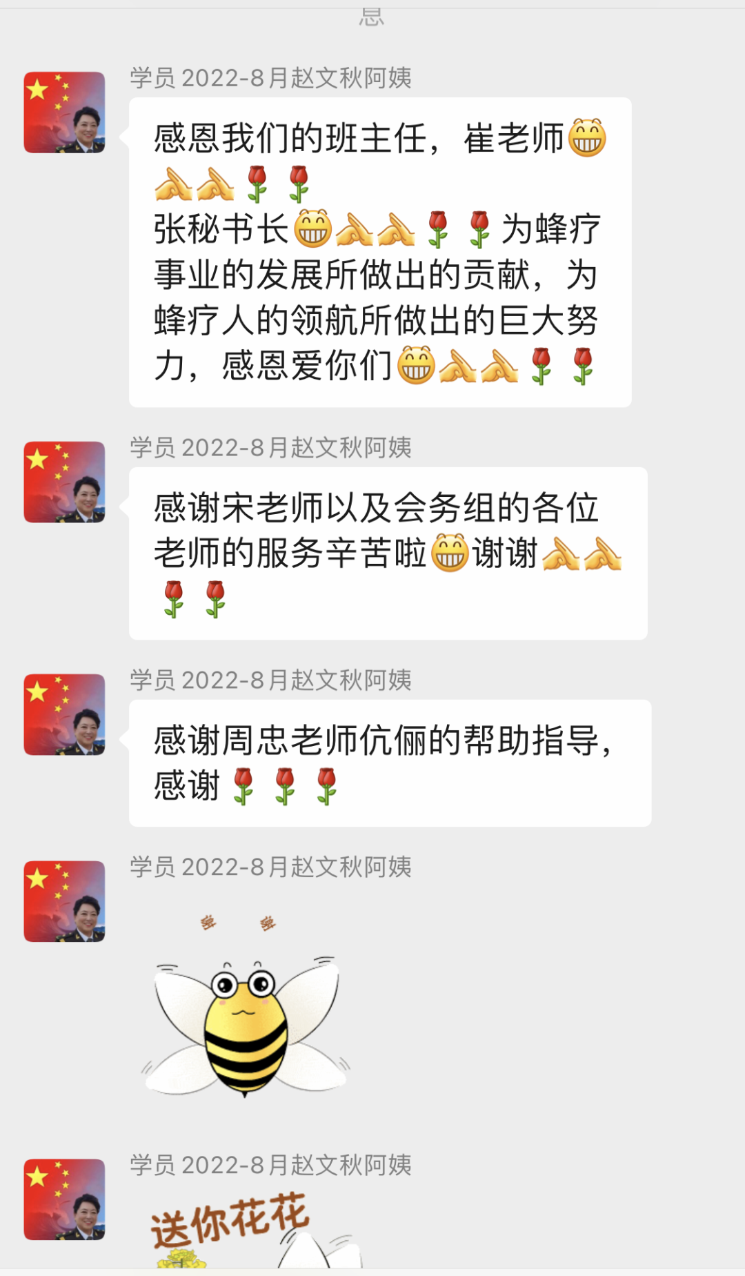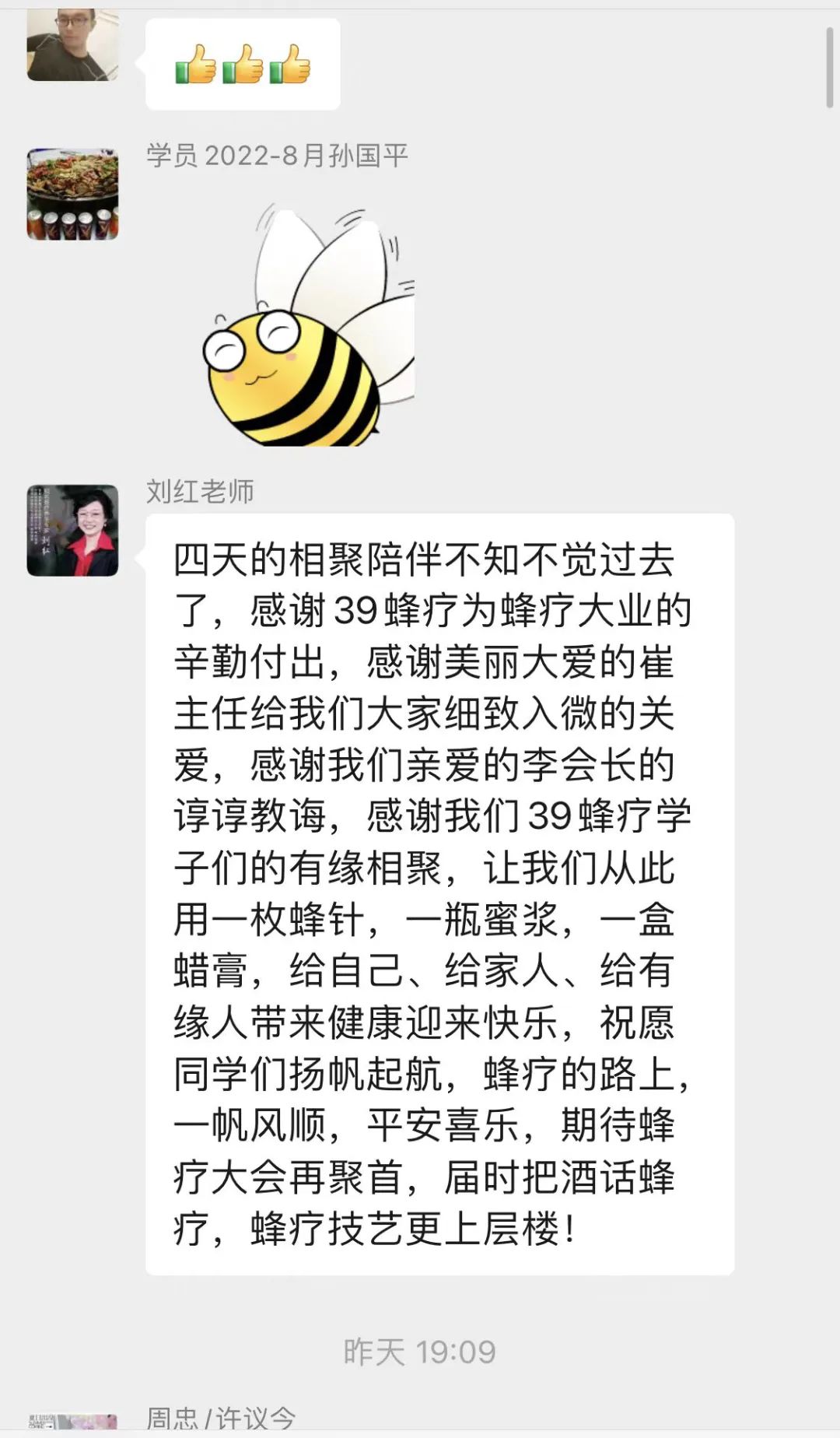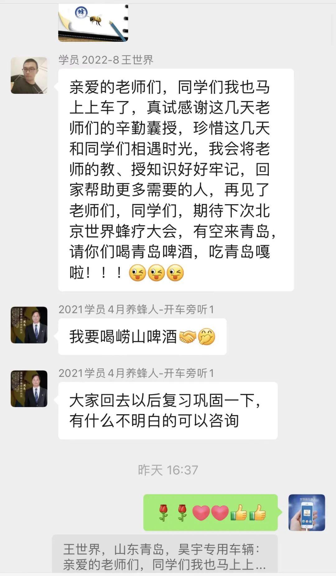 今后在学无止境的路上,同学们将继续跟着“39蜂疗-学员终身微信学习群”复盘学习成果,探究蜂疗更深入的技术,为今后蜂疗工作的开展打好坚实的基础;为推动我国蜂疗发展贡献自己的力量。