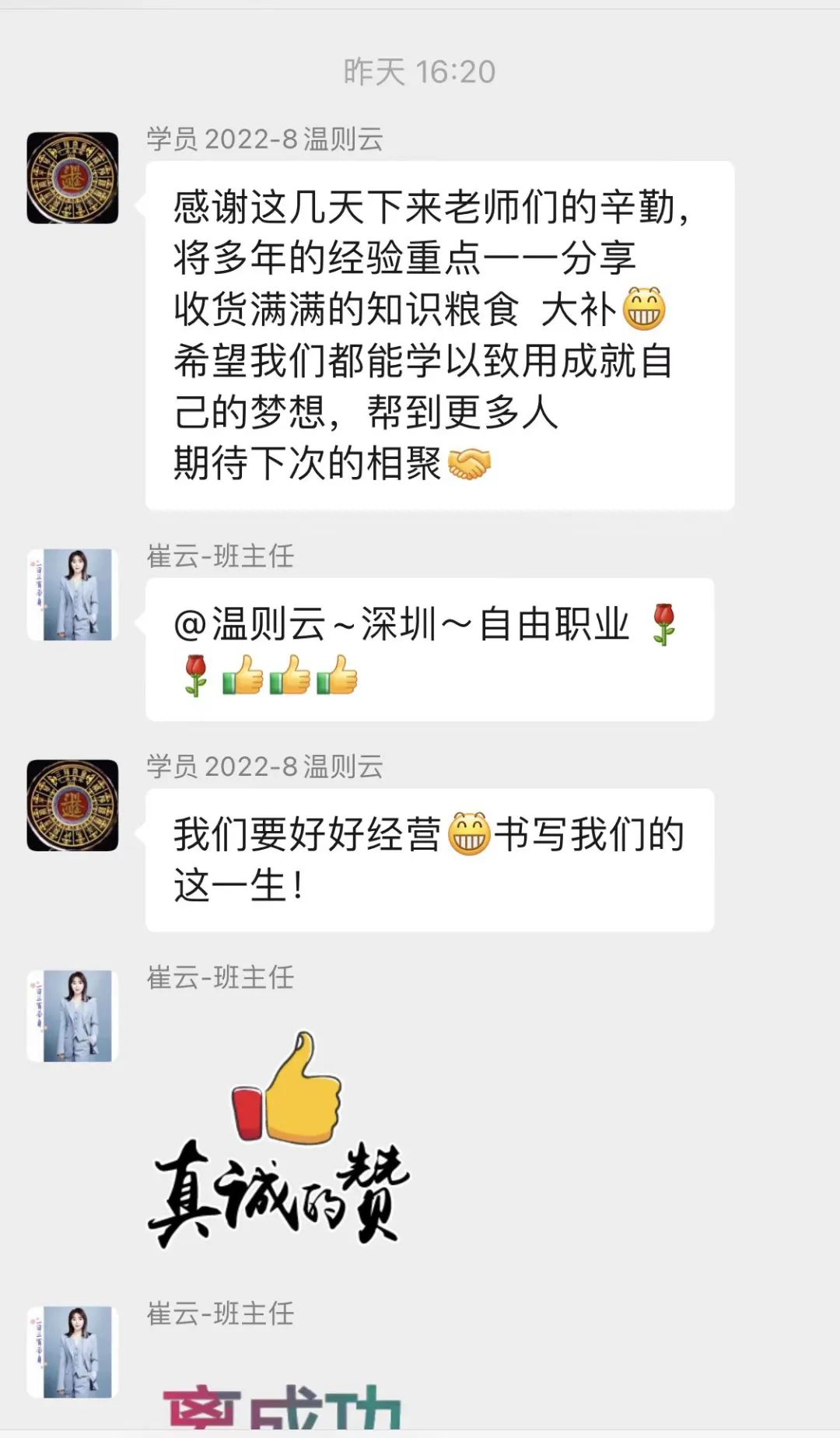 每一堂成功的课背后,离不开学员们互相的评议和指导;每一个教学理念提升的背后,也离不开学员间的相互碰撞和交流!能成为同学是我们的缘分,我们定会好好珍惜这一笔财富和这一段同学情缘的!