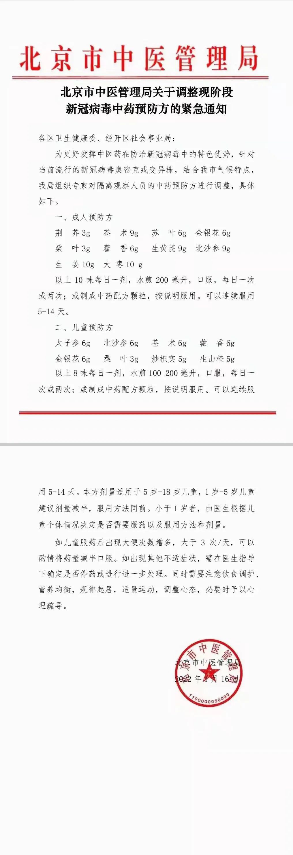 为更好发挥中医药在防治新冠病毒中的特色优势,针对当前流行的新冠病毒奥密克戎变异株,结合我市气候特点。我局组织专家对隔离观察人员的中药预防方进行调整,具体如下。