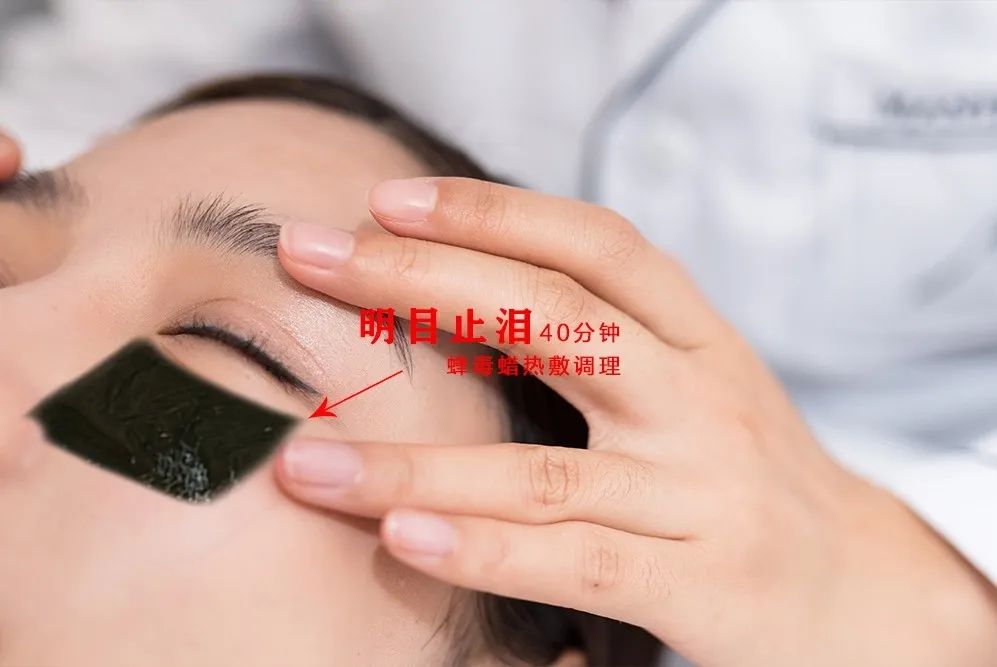 用蜂毒蜡热敷承泣穴30~40分钟,以局部温热而不灼烫为度。
