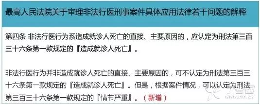“非法行医行为并非造成就诊人死亡的直接、主要原因的,可不认定为刑法第三百三十六条第一款规定的‘造成就诊人死亡’。但是,根据案件情况,可以认定为刑法第三百三十六条第一款规定的‘情节严重’。”