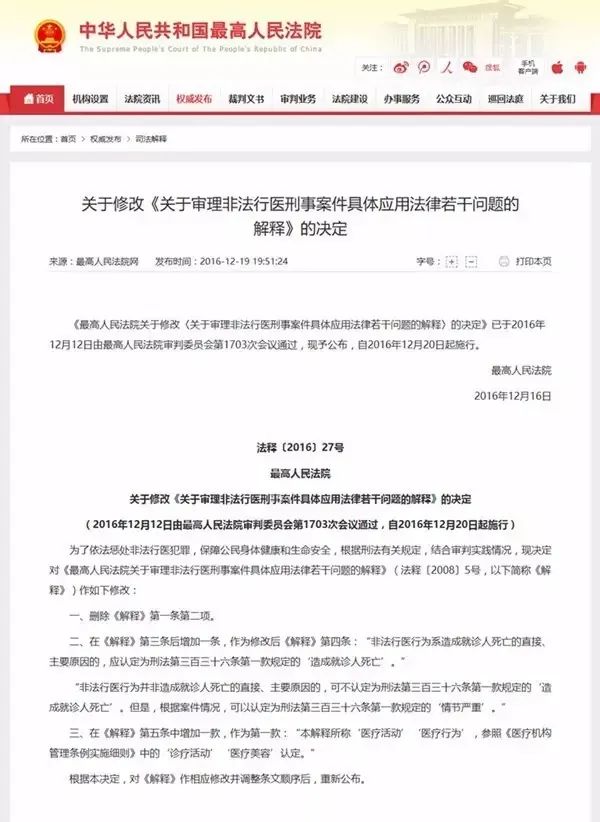 为了依法惩处非法行医犯罪,保障公民身体健康和生命安全,根据刑法有关规定,结合审判实践情况,现决定对《最高人民法院关于审理非法行医刑事案件具体应用法律若干问题的解释》(法释〔2008〕5号,以下简称《解释》)作如下修改: