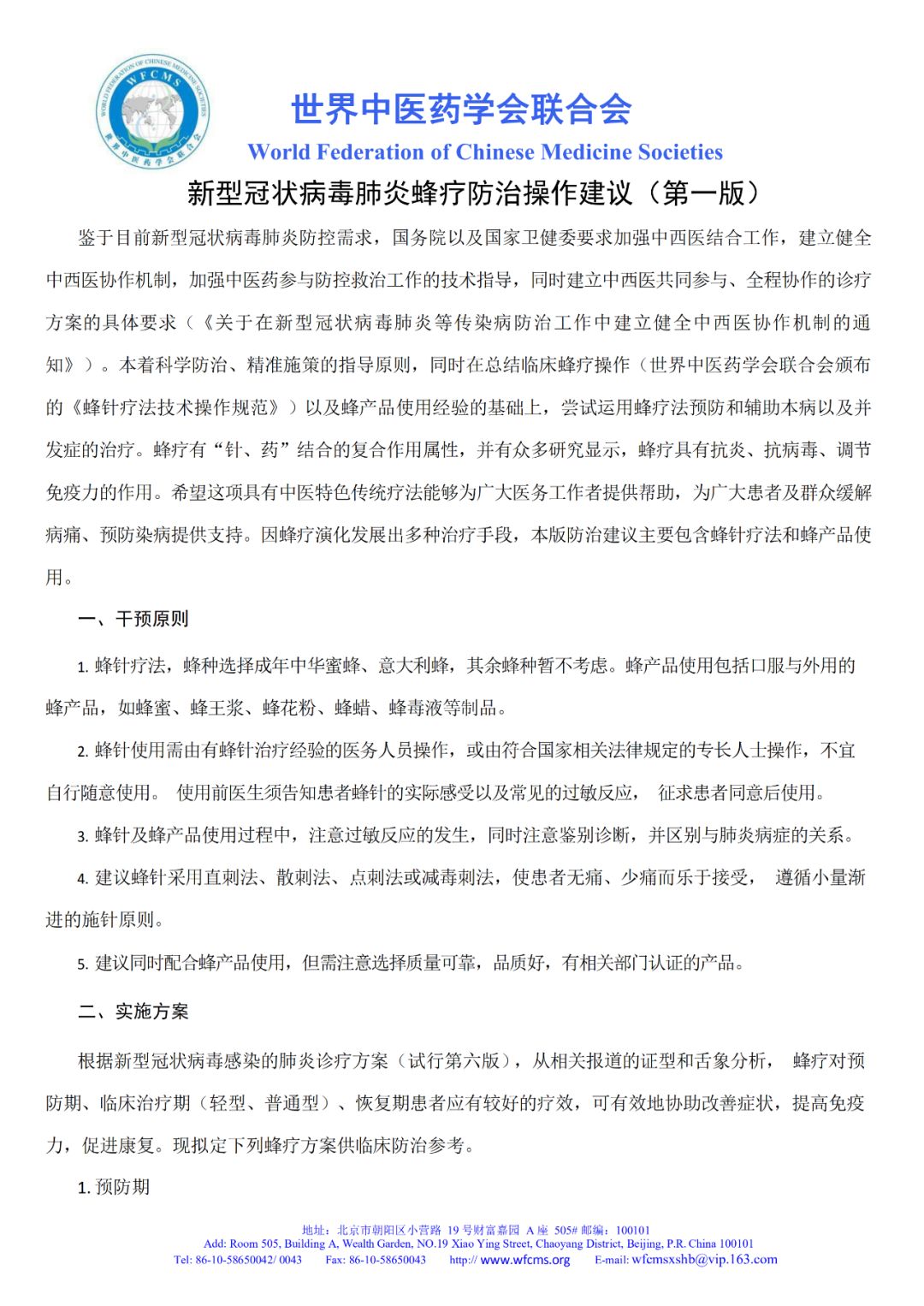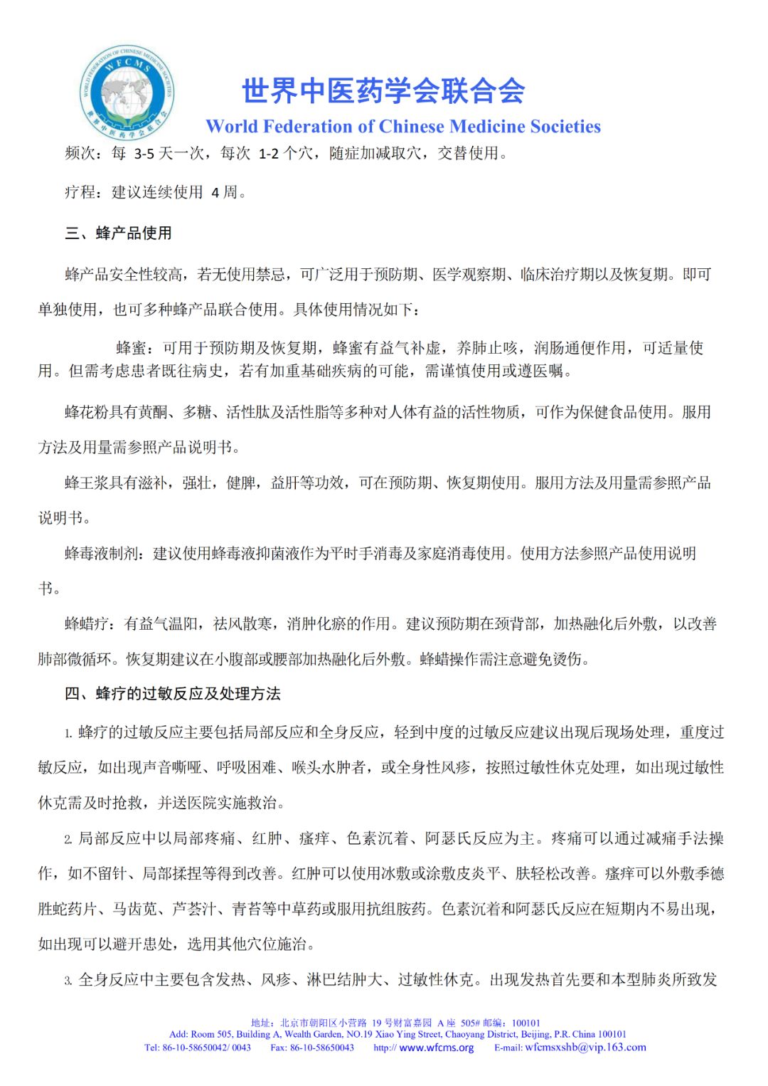 本指导意见由世界中医药学会联合会蜂疗专业委员会专家组拟定,敬请斧正。