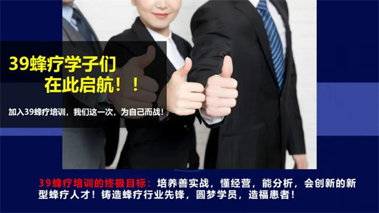 39蜂疗人才培训基地肩负中医蜂疗人才培养的时代使命,倾心打造中医蜂疗杰出人才,为盛世蜂疗·蜂界崛起注入强劲动力。