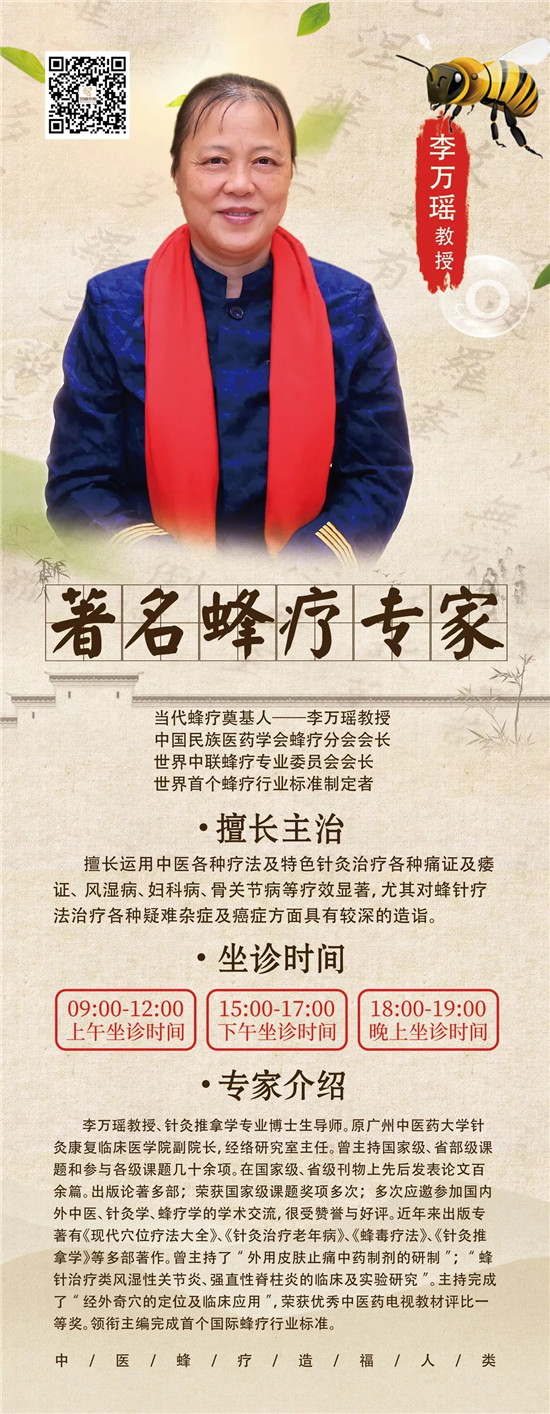 39蜂疗网知名专家团是由以当代蜂疗奠基人,著名蜂疗专家 李万瑶教授领衔带队的国内资深蜂疗名家和专家们组成的爱心专家团队,为广大疾患提供疾病的咨询与解决方案;他们都拥有数十年临床经验和中医蜂疗多项研究成果。尤其是李万瑶教授至今已培养出了国内外上千名优秀蜂疗人才。