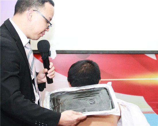 实操示范环节中,一名患有严重膝关节疼痛的学员自告奋勇上台,刘红老师切实通过问诊、查体、甄别诊断等一系列治疗手法为其进行现场治疗,并提出治疗建议,得到学员的高度认可。同时,医患身份的换位,也让学员从患者角度进一步加深了对课程的学习与思考,以帮助其课后更好地融会贯通运用到日常蜂疗临床工作中。