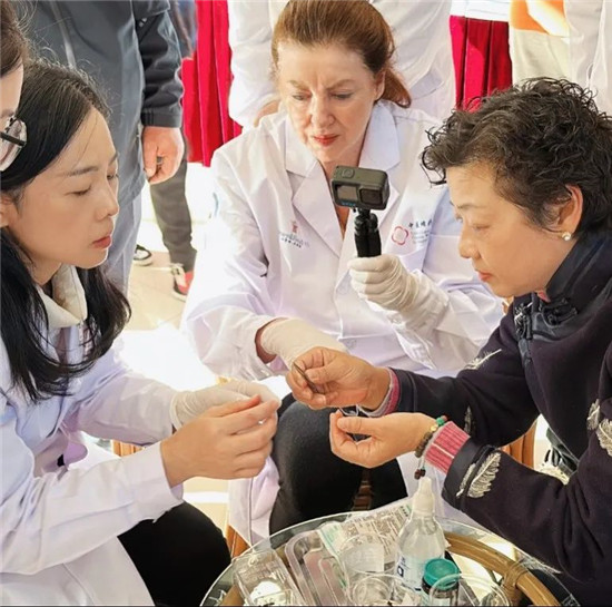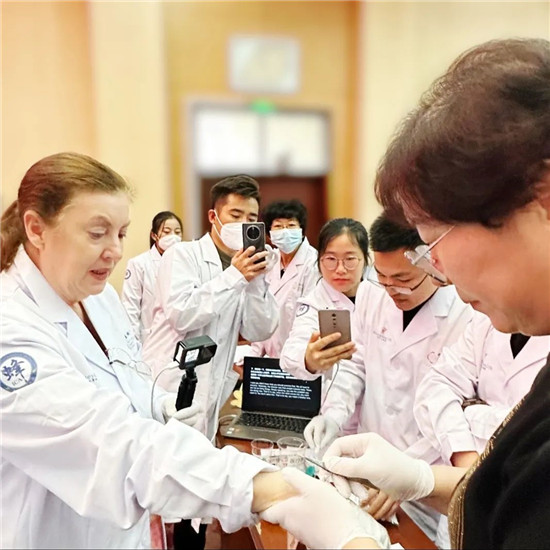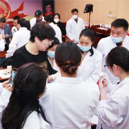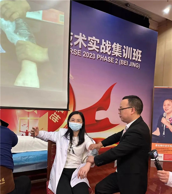 她还通过多张解剖图带领学员认识学习骨关节疾病、风湿、类风湿和腰椎间盘突出常见病因及病理分型;从定义、解剖、病理、分型等方面出发还介绍了颈椎病诊疗的整体理论体系,重点讲解针对三种不同类型的颈椎病如何进行蜂针、蜂毒治疗。现场学习氛围浓厚,学员踊跃上手操作,既加深了对知识的巩固理解,同时也促进了师生与学员之间的经验交流。