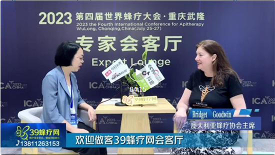 2023年7月25日至27日,第四届世界蜂疗大会在中国重庆武隆盛大召开。澳大利亚蜂疗协会Bridget Goodwin主席应邀出席本届大会并做了主题为《蜂毒与化学治疗癌症的比较》的学术报告、做客39蜂疗网会客厅。