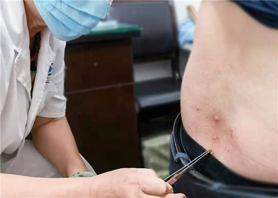 通过临床观察发现,蜂毒进入人体后,会循经络扩散,在人体瘀堵处红肿,这种红肿的程度与经络瘀堵的状况成正比,红肿直至经络打通才能消去。而针灸在施针时一定要准确的扎在穴位上,使病人感到有酸、麻、胀的“得气”感,通过对相应脏腑经络的刺激,通过补、泻、温通的手法,达到治疗疾病的目的。