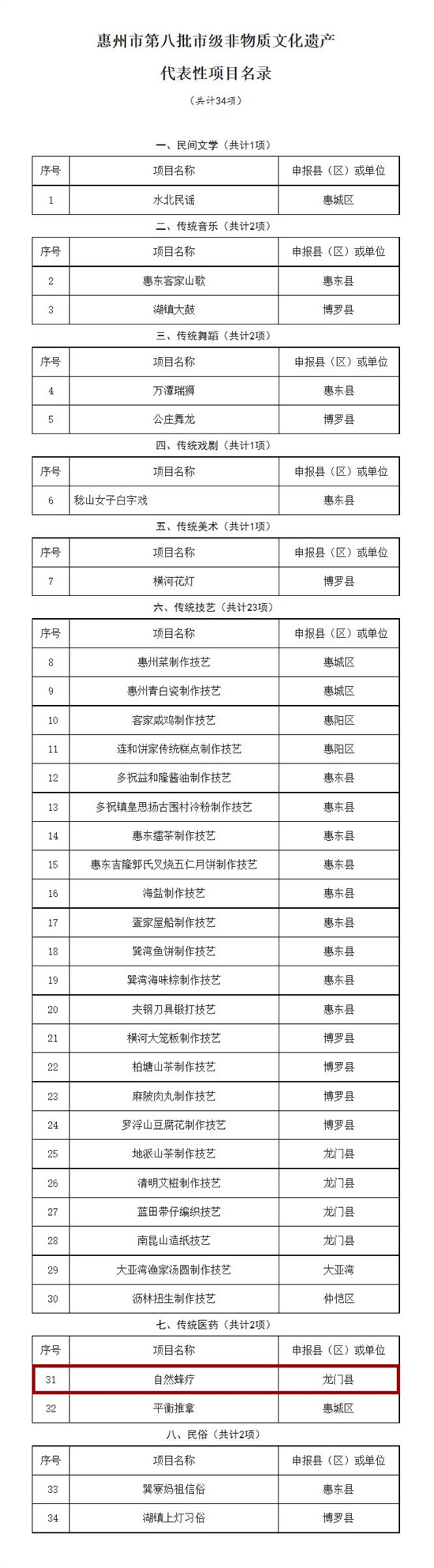近日,惠州第八批市级非物质文化遗产代表性项目名录新鲜出炉啦!在众多传统技艺中,自然蜂疗作为传统医药项目脱颖而出,成为了惠州市非物质文化遗产之一。这不禁让人好奇,这个小小的蜂疗技术,究竟有何魅力能屡次“破圈”造就影响力呢?