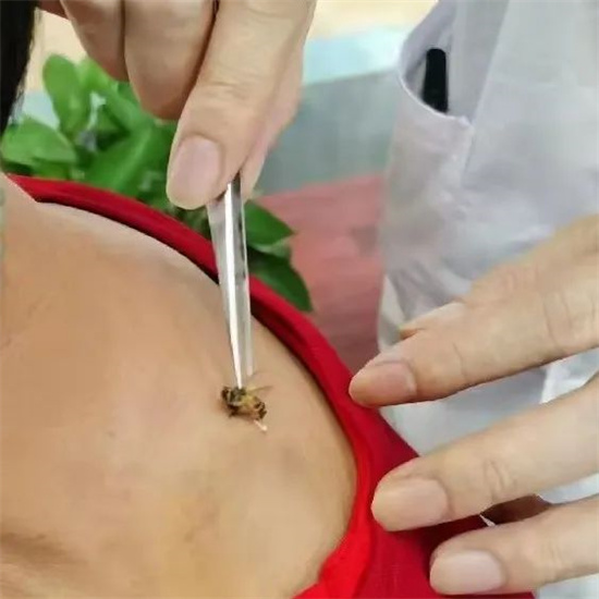 惠州市第一人民医院的中医科负责人陈文滨介绍,这一传统疗法是利用蜂的螫器官作为针具,将活蜂放在患处局部皮肤上,使其叮咬注入蜂毒。蜂毒含有多种生物活性成分,能起到活血化瘀、散寒止痛的作用。这一疗法结合了“针、药、灸”的复合型刺灸法,需要医生对患者的病情、身体情况有高度准确的把握,才能达到良好的效果。