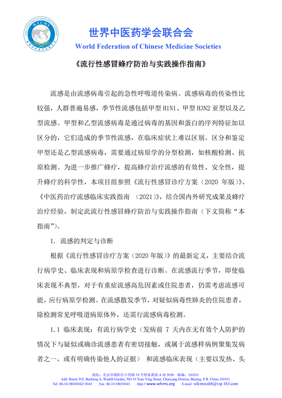 2024年《流行性感冒蜂疗防治与实践操作指南》正式发布!
