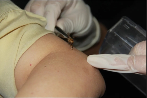 蜂针皮试 是指初次接受蜂针治疗的患者,先用蜂针点刺手法,进行皮肤刺激进行测定,以观察患者的局部及全身反应。因为许多病人在初次接受蜂针治疗时都有一定的过敏反应,严重者可出现全身反应,所以进行必要的皮试是非常必要的,可以避免患者不必要的痛苦,让蜂针治疗达到安全而有效的目的。