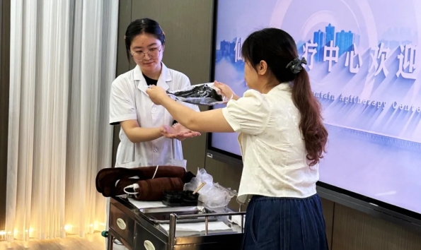 活动期间,主办方还组织了实地考察环节,带领与会代表深入仙女山蜂疗中心、研学蜂场、亲身体验了蜜蜂的养殖、蜂产品的采集,以及蜂针疗法与蜂毒蜡疗的临床应用。这种理论与实践相结合的方式,让与会者更加直观地感受到了中医蜂疗的独特魅力和广阔前景。