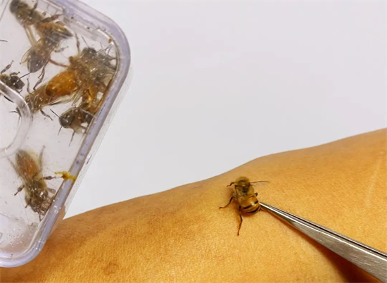 蜂针时会致痛,即有刺痛感。其锐痛、刺痛感为第一疼痛,或快痛,其痛刺激冲动是经外周神经中的Aδ纤维传入中枢的。痛觉迅速形成, 定位明确,除去刺激后,可很快痛感消失。蜂针只是一过性的刺痛,虽然时间很短,不超过1分钟,但使人难受,往往限制了患者来接受蜂针治疗,会让患者产生惧怕心理。所以为了防止这种刺痛感,我们往往进行无痛蜂针治疗,尤其对小儿及畏痛之士,这样做无痛蜂针治疗就可以明显提高患者接受度。