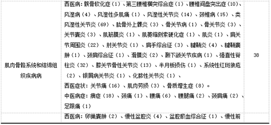 5.疾病谱统计方法 ①病名:病谱统计中病名统计按照有西医病名不用中医病名,有中医病证名不用西医症状名的原则,考虑到中医文献特点,将蜂针疾病谱按西医病名诊断、西医症状诊断和中医病证诊断进行分类统计,并且部分病名进行了合并归纳。②疾病系统:病谱分类上主要按照世界卫生组织关于疾病和有关健康问题的国际统计分类(ICD-10)将蜂针病谱的实际情况,共分为14大类,将少数疾病按临床实际情况进行了调整,比如痛风在ICD-10中被纳入为肌肉骨骼系统和结缔组织疾病,此次将此调整为内分泌、营养和代谢病中;脑血管病在ICD-10中被纳入为循环系统;③疾病统计:对文献中每一个疾病所报道的次数进行统计,称为频次。