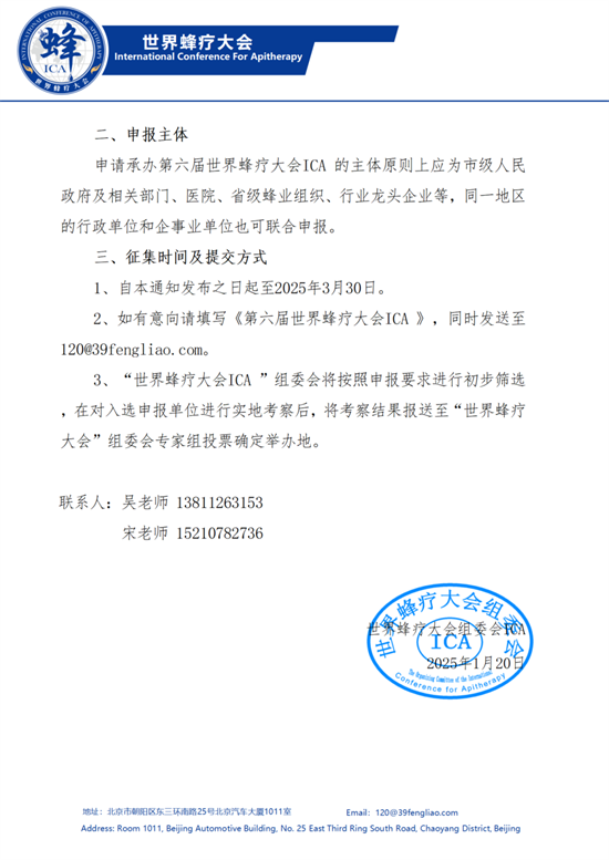 “第六届世界蜂疗大会” 承办单位征集通知