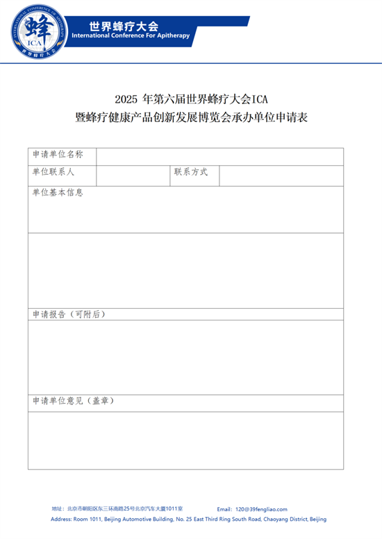 在全球健康产业蓬勃发展,人们对自然疗法关注度日益攀升的当下,世界蜂疗大会 ICA 作为全球蜂疗行业的标杆性年度盛会,即将迎来意义非凡的第六届。本届大会将由世界中联蜂疗专业委员会与中国蜂产品协会主办;现面向社会各界,诚挚招募承办单位与协办单位,携手共创这场汇聚前沿蜂疗智慧、推动行业进步的国际交流盛会。