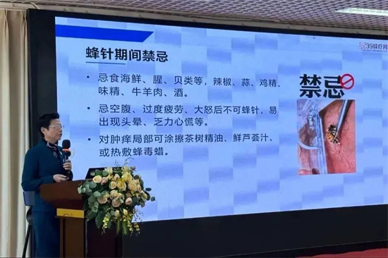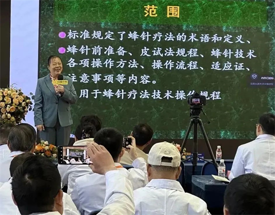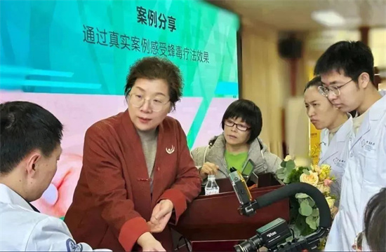 针对蜂疗的临床实践,李教授重点讲解了蜂疗优势病种的诊疗方案,并详细剖析了蜂针疗法技术操作规范,包括“穴位定位-手法施针-毒液控制” 全流程技术要点。她还特别强调了蜂疗过敏防治与临床安全规范,通过真实案例分享,帮助学员树立安全意识,掌握应急处理方法。