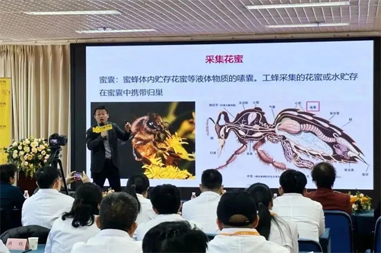 此外,孙秘书长还重点讲解了蜂产品的保健功效,包括蜂蜜、蜂胶、蜂王浆、蜂花粉、蜂王胎、蜂巢、蜂蜡等产品的营养价值和医学应用,并结合蜂疗的临床实践,阐述了其在慢性病调理、免疫调节及康养产业中的重要作用。