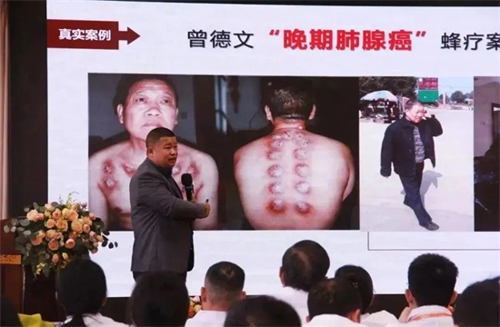 特别值得一提的是,蜂疗抗癌孝子曾伟老师的分享让学员们深受感动和鼓舞。他分享了自己的蜂疗抗癌方法及10大癌症蜂针疗法的选穴、蜂针剂量及蜂产品联合应用方案。他的亲身经历和成功案例激励了学员们,使他们对蜂疗充满了信心和期待。