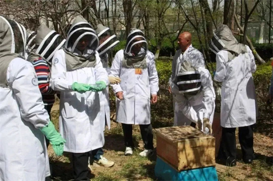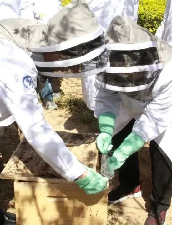 学员们分组进行蜂箱取蜂实操见习