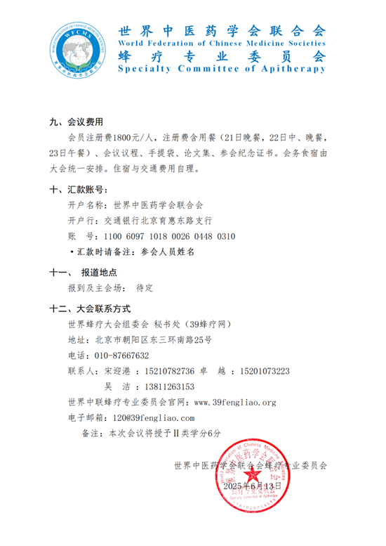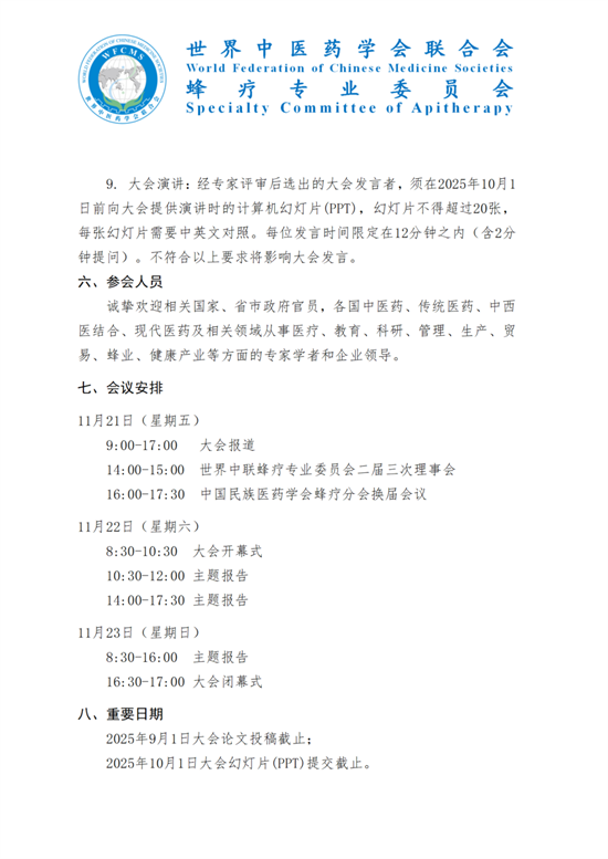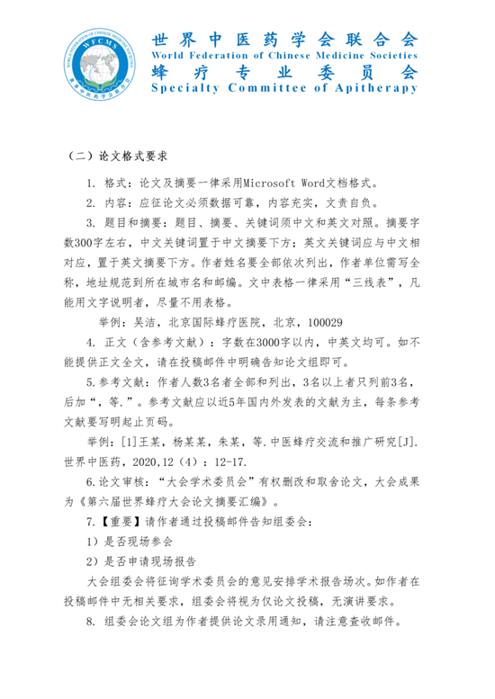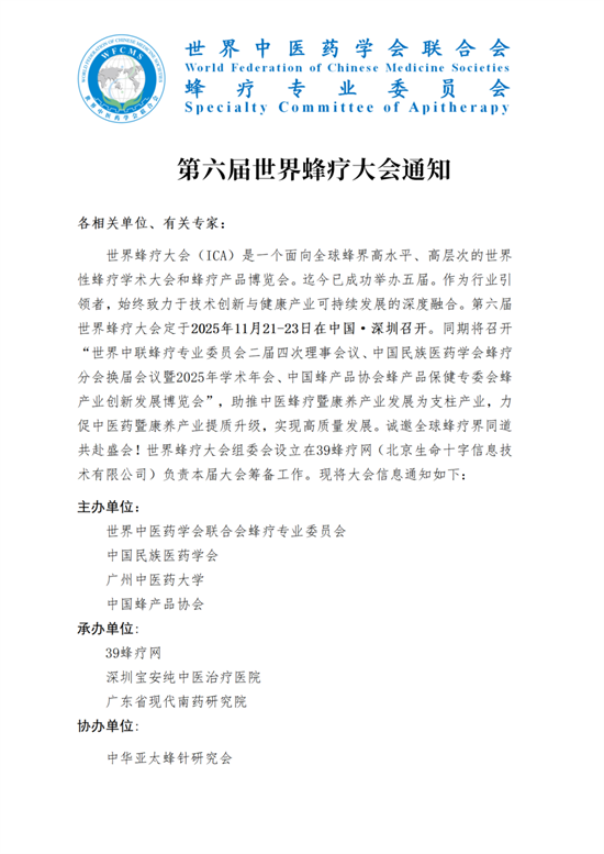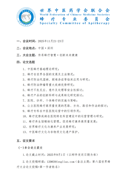 论文征集 第六届世界蜂疗大会欢迎投稿!