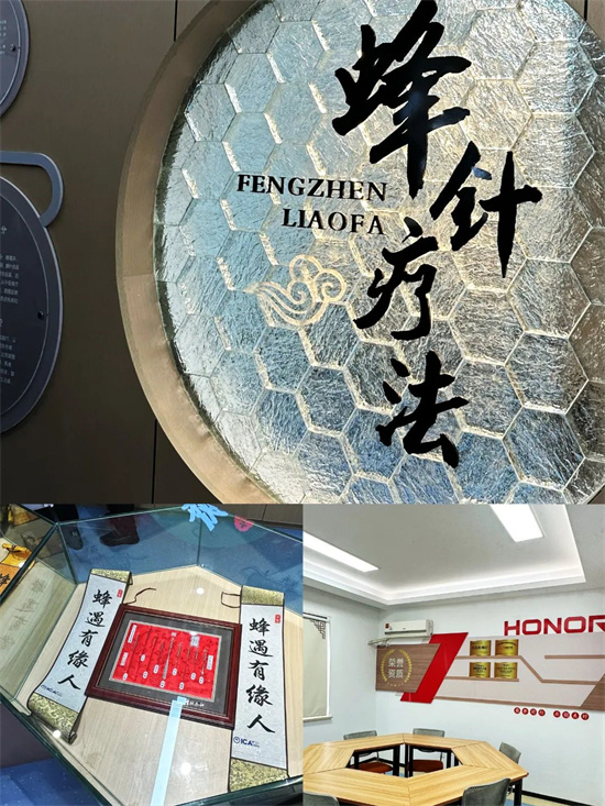 “蜂针虽微,可通经脉;仁心所至,健康花开。”