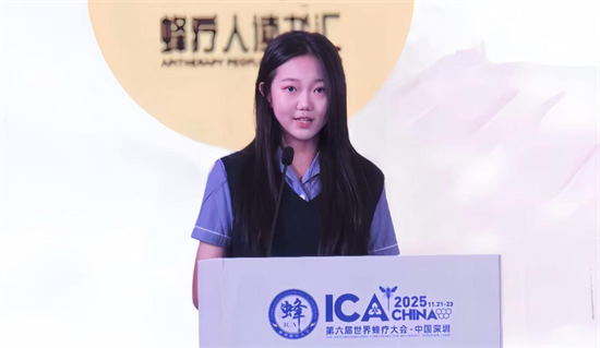 【39蜂疗网】记者 讯 近日在中国·深圳举行的第六届世界蜂疗大会(ICA)上,一位来自香港的年轻声音吸引了全球与会者的关注。香港圣士提反书院中学生张禄媱(Annie Zhang)登上国际讲台,以“少年之心,传蜂疗之韵”为主题发表倡议演讲,呼吁全球青少年共同关注与传承蜂疗这一中华医学瑰宝,为古老技艺注入青春活力。