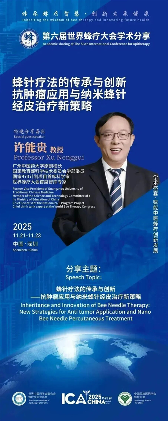 答:中医蜂疗最初是从镇痛起步的,尤其在治疗类风湿性关节炎这类顽固病症方面,显示出良好的镇痛效果。相较于常使用的激素类药物,蜂疗源于天然蜂毒,不仅副作用较小,也符合回归自然的健康理念,因此在风湿类关节炎治疗中具有独特优势。今天上午我也着重提到,蜂针疗法在抗肿瘤方面的潜力十分值得关注。周岱翰大师也曾多次向我强调,未来若能突破相关研究瓶颈,蜂针疗法在这一领域的应用前景将非常广阔。我们需要在抗肿瘤方向开展更深入的研究,通过多中心、大样本、随机对照的临床试验,进一步明确其疗效与机制,讲清楚、讲扎实。我相信,随着研究不断推进,蜂疗将在全球范围内获得更广泛的认可与推广。我也期待通过每一届世界蜂疗大会,让更多人了解并受益于这一疗法,使蜂疗真正走向世界、服务人类健康。
