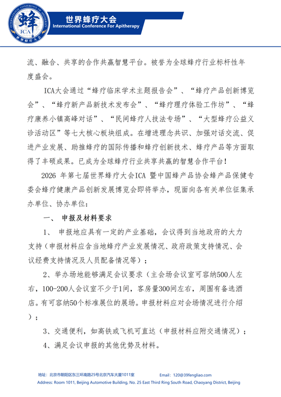 第七届世界蜂疗大会ICA|承办单位招募
