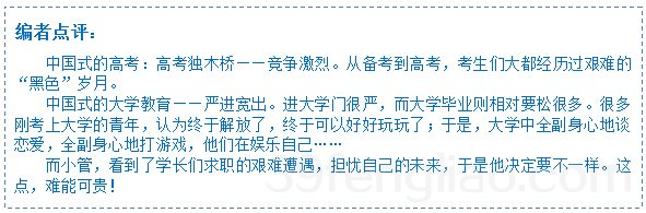 我是个有自己想法的人,同时又会自我怀疑。我一直感觉现在的我们不应该过得如此安逸,可是在我们积极的为未来笨鸟先飞的时候,总是有人告诉我们,趁这个时候好好玩玩吧,不然就没时间了。然后我就开始怀疑自己的想法,是不是我总是瞎积极,身边的人不都是这样安逸地一天又一天嘛。这时候我看到了很多学哥学姐们的现在——都在为找一份满意的工作而发愁,因为没有一点拿得出手的东西。我很坚定地觉得,如果将来也遭遇到那样的境地,我一定会很难过。于是,我有了一个想法——要利用剩下的假期充实自己。