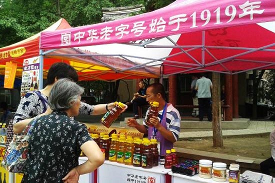 在加盟商江志刚的大力宣传下,百花这一中华老字号、知名品牌吸引了许多顾客,人们纷纷上前详细了解蜂产品知识,并积极踊跃地购买百花蜂产品。