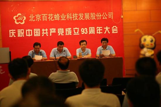 孔书记指出:我们回顾党的光辉战斗历程和取得的成就,重要的是要明确新时期,党组织和每个党员身上肩负的责任,不断加强党的自身建设,充分发挥党组织和党员的作用,为实现党在新时期的任务目标,为实现公司的发展做出贡献。近几年来,在市社党委的正确领导下,公司各级党组织和全体共产党员,带领全体员工,团结奋斗,开拓创新,保持了公司平稳较快发展的良好发展势头,继2013年销售突破两亿大关后,今年上半年,销售、利润双双创出历史新高,达到了我们预期的目标,成绩可喜可贺,成绩来之不易。这是全体共产党员和全体百花员工努力奋斗的结果,集中体现了广大党员在公司各部室、各岗位上发挥模范带头作用的结果,正如刚才在大会上做发言的几位党员那样,尽心尽力,尽职尽责,埋头苦干,兢兢业业,努力实践着公司党委在“创先争优”活动中,对每个党员提出的目标:做中国蜂业第一名牌,创岗位工作一流业绩。
