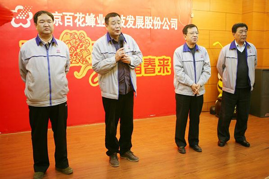 2014年1月24日、26日下午,百花蜂业公司分别在亦庄总部、长阳生产基地举行了“百花福到、马踏春来”新春游艺会,并为职工准备了精彩的娱乐节目和丰富的奖品。公司党委书记孔德声、总经理郭利军、副总经理曹振虎、王俊启,向全体职工送去了节日的祝福和问候。