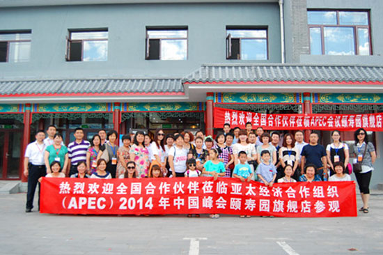 2014年6月28日,天朗气清,惠风和畅,进入夏季的北京难得迎来蓝天白云且又爽朗舒适的天气。这一天,颐寿园和来自祖国大江南北的一百多位合作伙伴回家欢聚一堂!在位于怀柔杨宋中影基地的益田影人花园酒店共举办了一场别开生面的新品发布会。本次发布会的主题是,新生和养育,寓意新品研发过程如同母亲十月怀胎与孕育和孩子出生后的培养、培育。现场,大家共同见证了颐寿园7个新孩子的诞生。