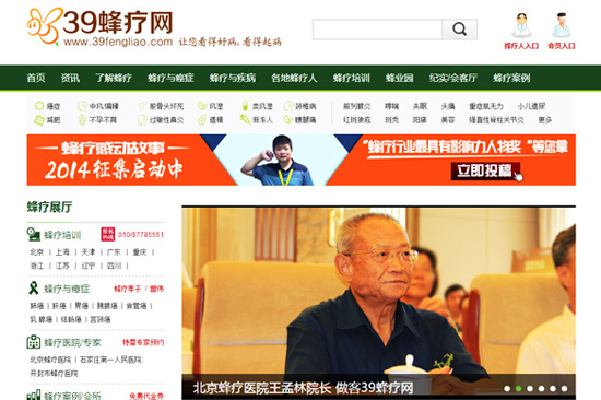 因为有您的关心支持,见证着39蜂疗网的成长、进步与发展。如今的39蜂疗网(www.39fengliao.com)已是中国最大并极具影响力的蜂疗健康行业门户网站,也是蜂业网络资讯的主要源头,海纳10万篇以上的健康资讯,7天24小时不间断地传播健康信息。39蜂疗网拥有专业的技术团队、资讯采编队伍、蜂疗专家爱心团队,以蜂疗健康新闻,记录时代进程,及时反映蜂疗健康行业动态,以蜂疗健康资讯服务网民生活,普及天然健康养生知识,帮助健康消费决策,全面覆盖蜂疗、蜂业领域以及蜂产品、养蜂技术、蜂疗培训、蜂疗养生馆等各大健康领域。引领蜂疗人、蜂产品企业、养蜂人对中国的天然保健养生事业作出更多更深入的思辨,积极推广我国蜂业界明星企业、优质品牌、专家学者;提升全社会对蜂疗、蜂产品健康养生保健意识!!